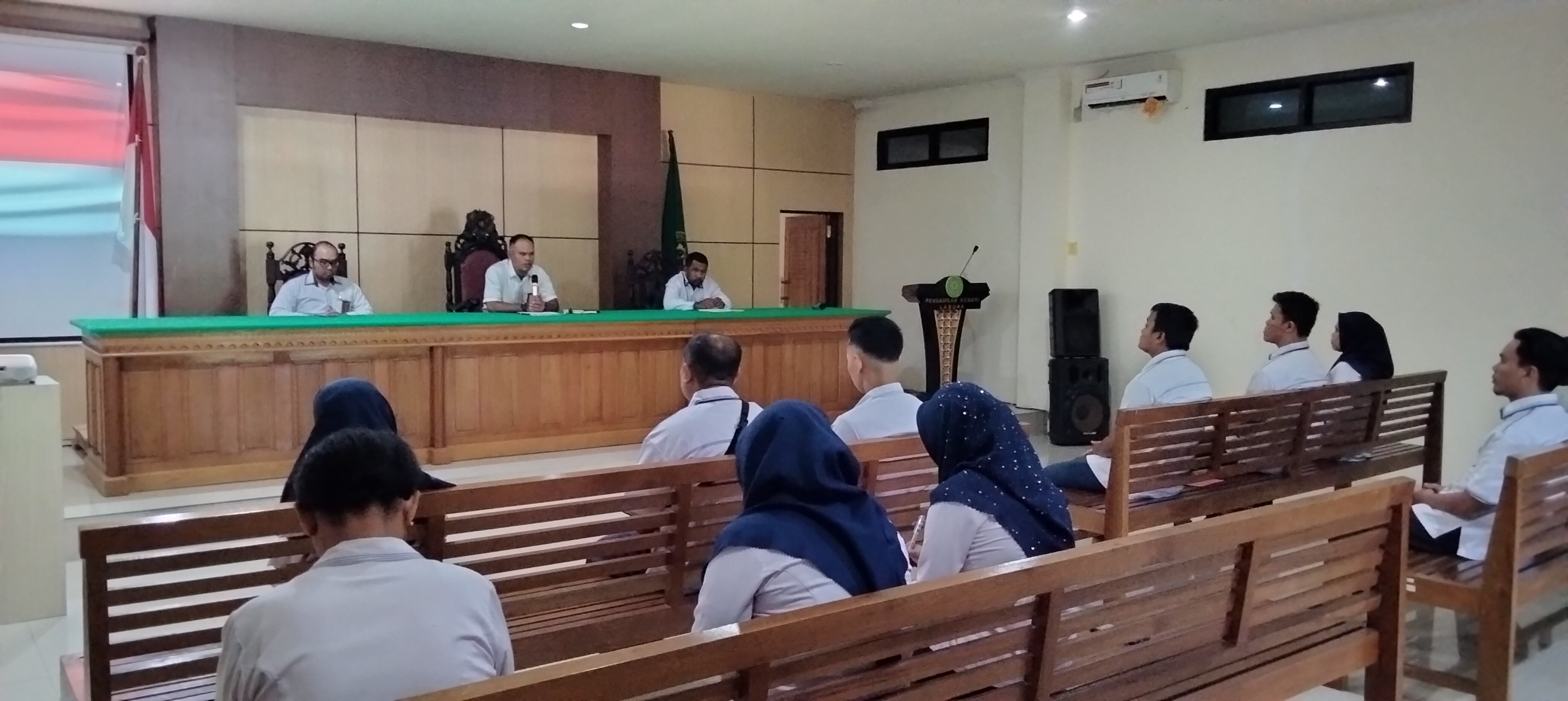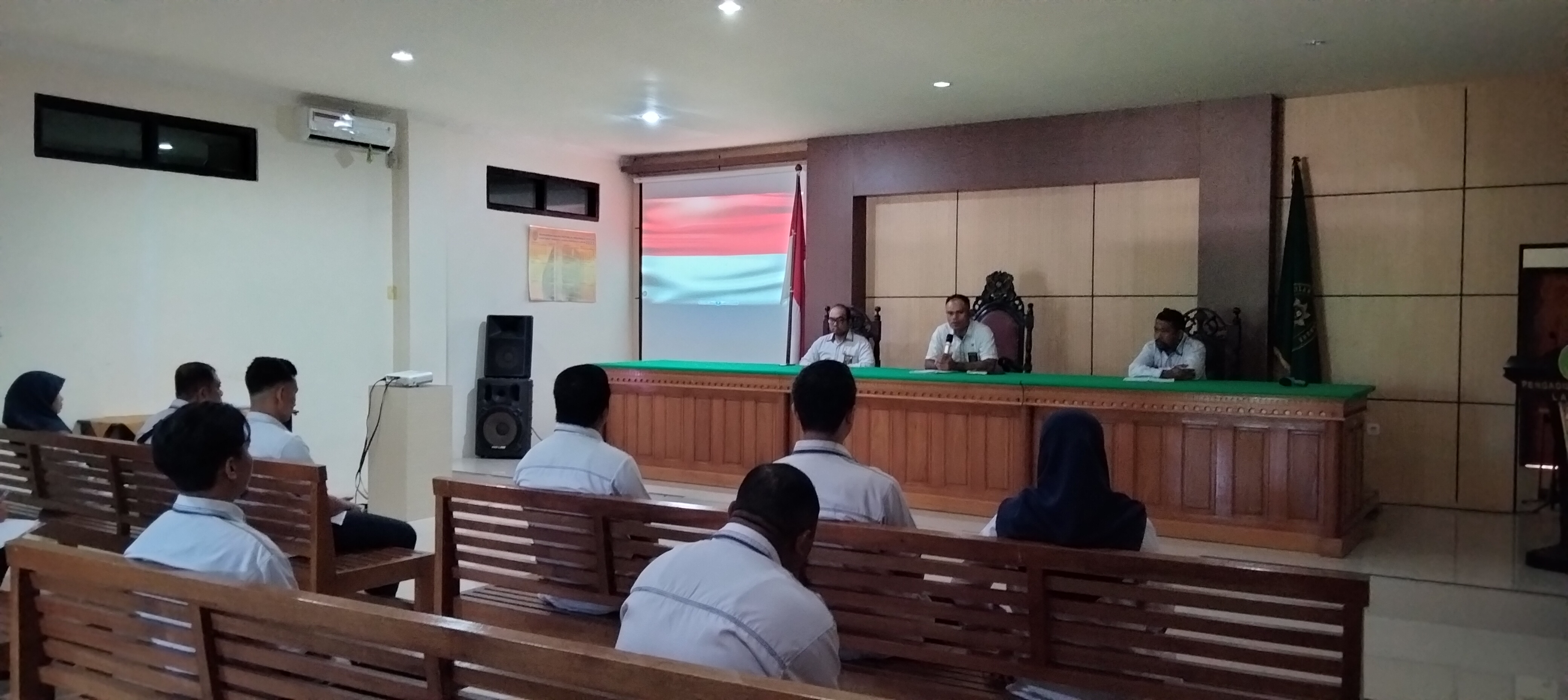 Labuha - Senin, 17 April 2023. Bertempat di ruang rapat lantai II Pengadilan Negeri Labuha dilaksanakan Rapat Rutin Bulan April 2023 Pengadilan Negeri Labuha, yang dipimpin oleh Ketua Pengadilan Negeri Labuha Bpk. Eduward, S.H., M.H. dan didampingi Hakim , Sekretaris beserta Diikuti Plt Panitera, Para Panitera Muda, Para Kepala Sub Bagian, Jurusita , Panitera Pengganti, Pegawai dan PPNPN