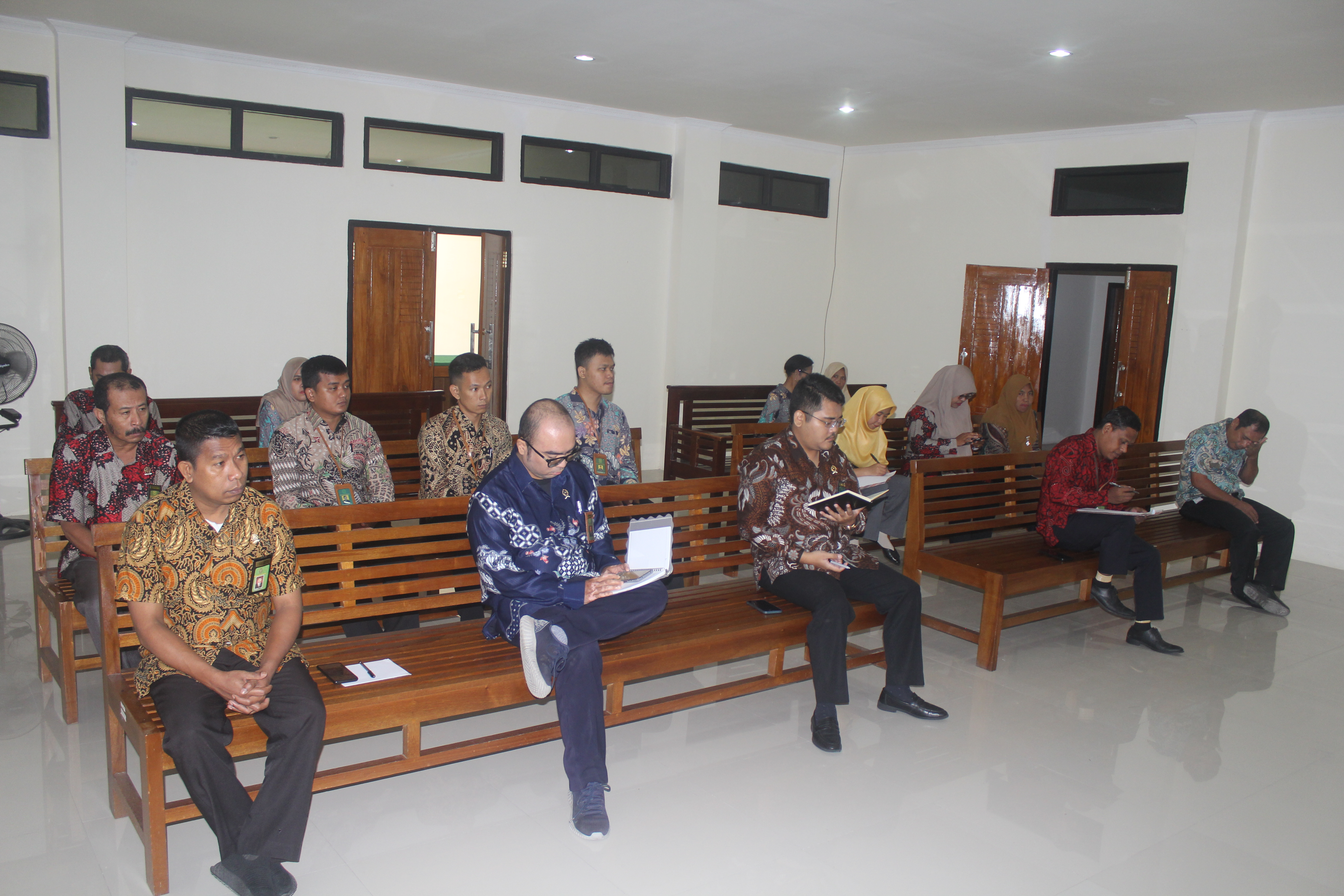 Rapat kali ini Ketua Pengadilan Negeri Labuha Menegaskan terkait perkara yang sudah diminutasi agar segera diarsipkan dan bagi petugas PTSP wajib berada di tempantnya masing-masing dan akan dibuat jadwal jaga bagi petugas PTSP.