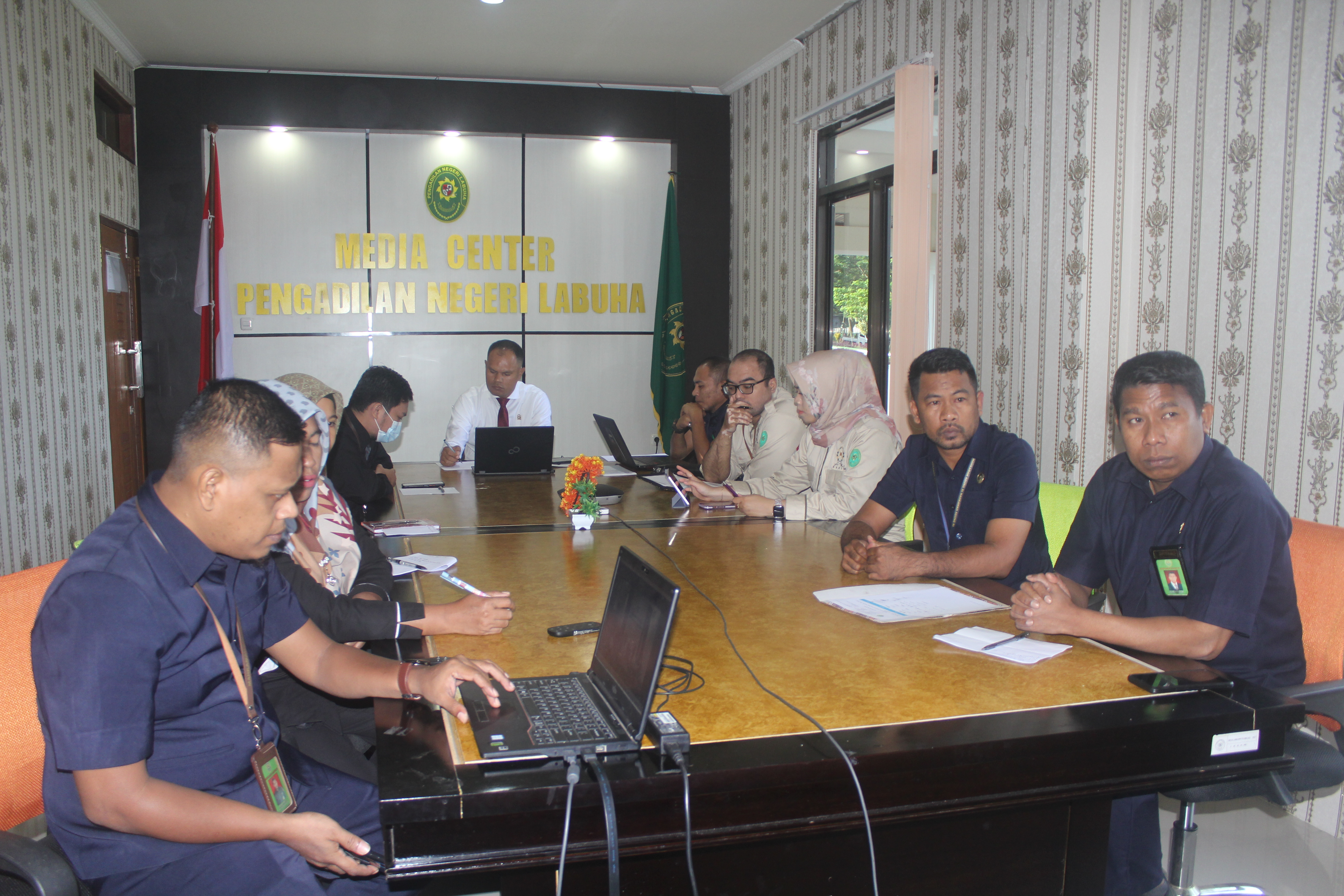 Labuha - Rabu, 20/07/2022. Pengadilan Negeri Labuha melaksanakan Agenda  Pembinaan dan Pengawasan Daerah Oleh Pengadilan Tinggi Maluku Utara Secara Virtual. Pembinaan dan pengawasan kali ini dipimpin oleh Ketua Pengadilan Tinggi maluku Utara.  Bertempat di Ruang Media Center Pengadilan Negeri Labuha dan diikuti Oleh Ketua Pengadilan Negeri Labuha,  Para Hakim, Panitera, Pejabat Struktural dan Fungsional, Panitera Pengganti, Jurusita Pengganti dan Staf.