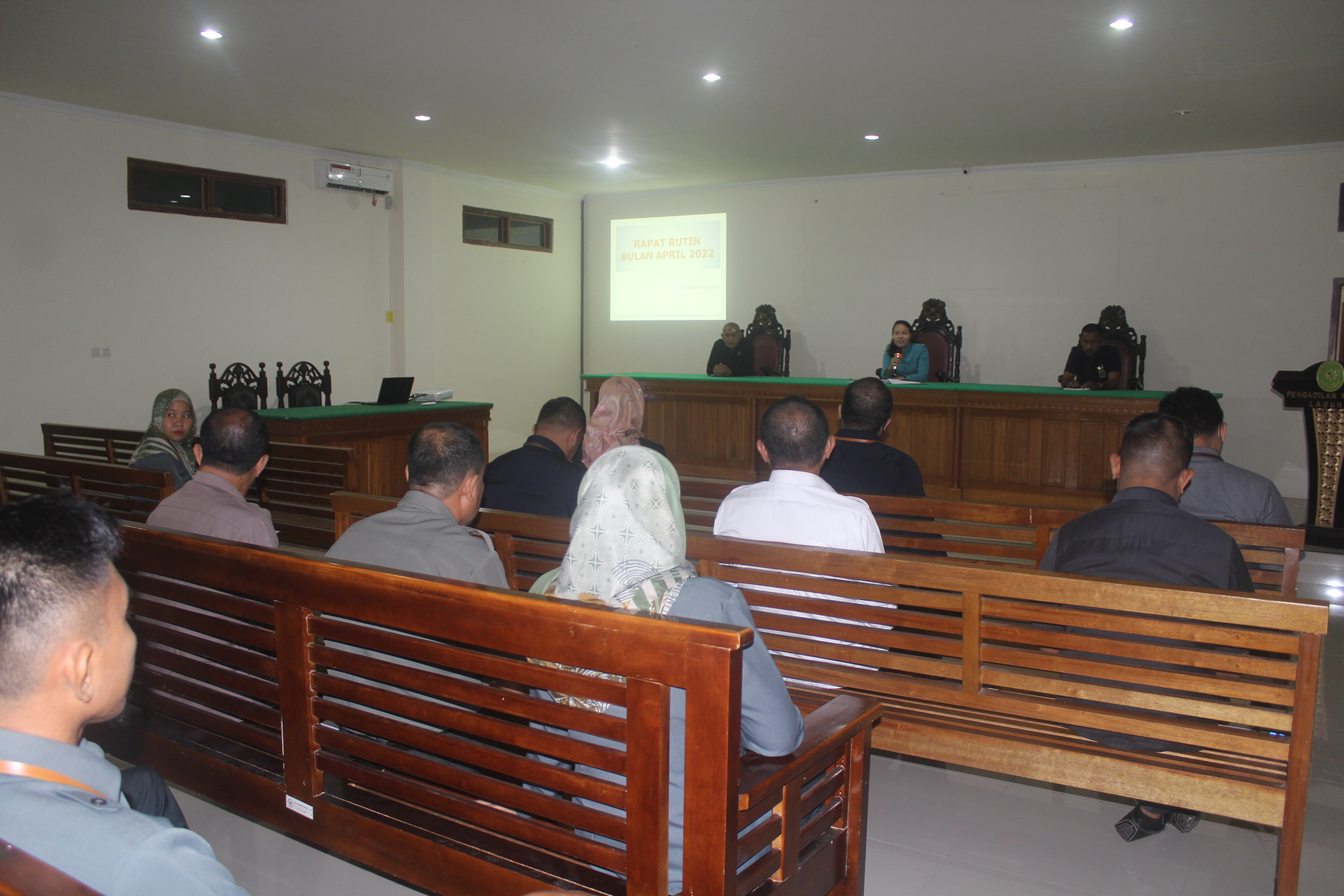 Labuha, Rabu 25 Mei Pada pukul 14:00 WIT. Bertempat di Ruang Rapat Lantai II Pengadilan Negeri Labuha di laksanakan Rapat Rutin bulan Mei 2022, Ketua Pengadilan Negeri Labuha Ibu ERNI LILY GUMOLILI, S.H., M.H sebagai pemimpin rapat. dihadiri oleh Para Hakim, Panitera, Sekretaris, Pejabat Struktural/Fungsional, Pegawai dan Tenaga Honorer.