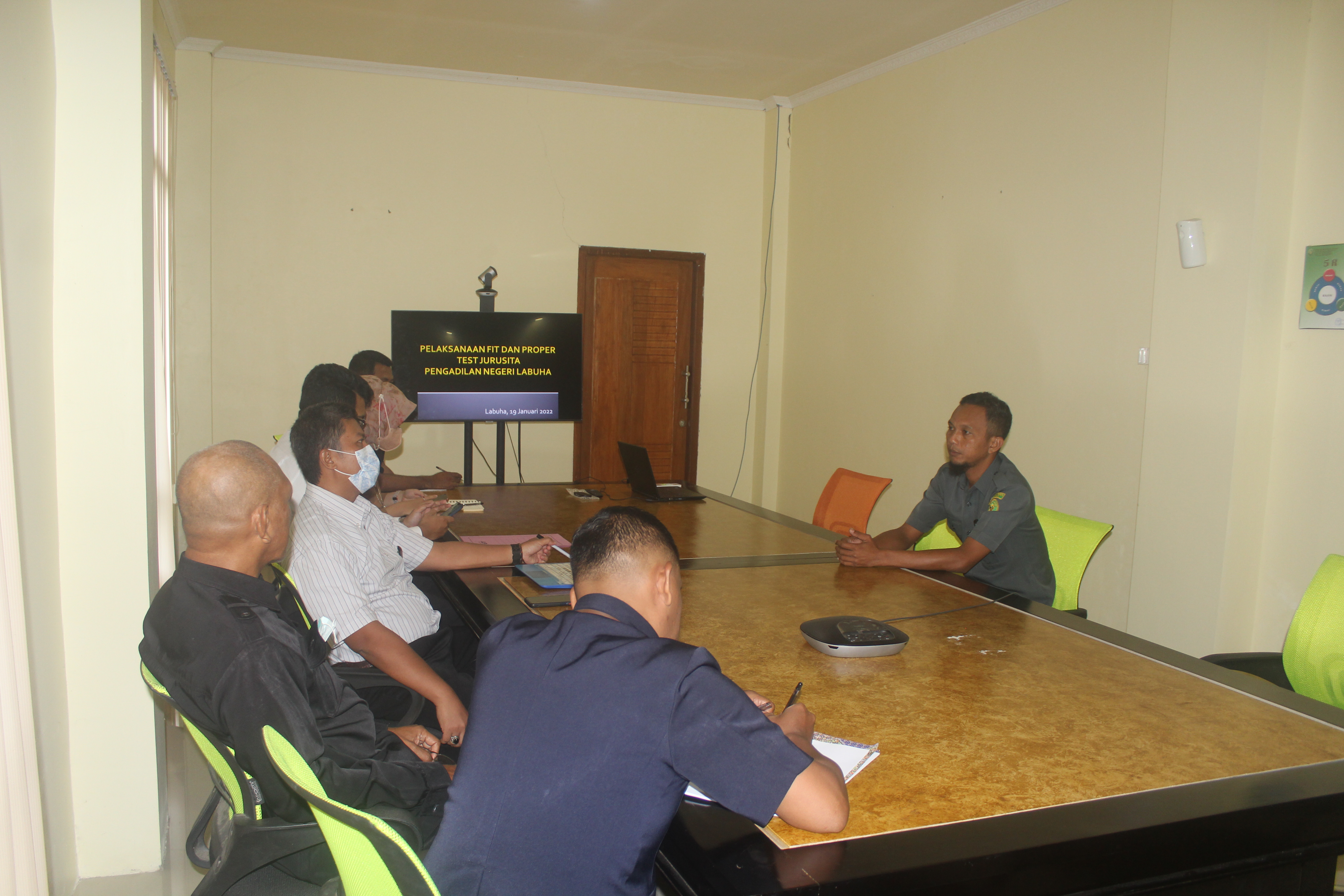 Labuha, 19 Januari 2022,  bertempat di ruang Media Center Pengadilan Negeri Labuha telah diadakan Fit dan Proper Test Jurusita Pengadilan Negeri Labuha dalam rangka usulan jabatan Jurusita Pengganti menjadi Jurusita.