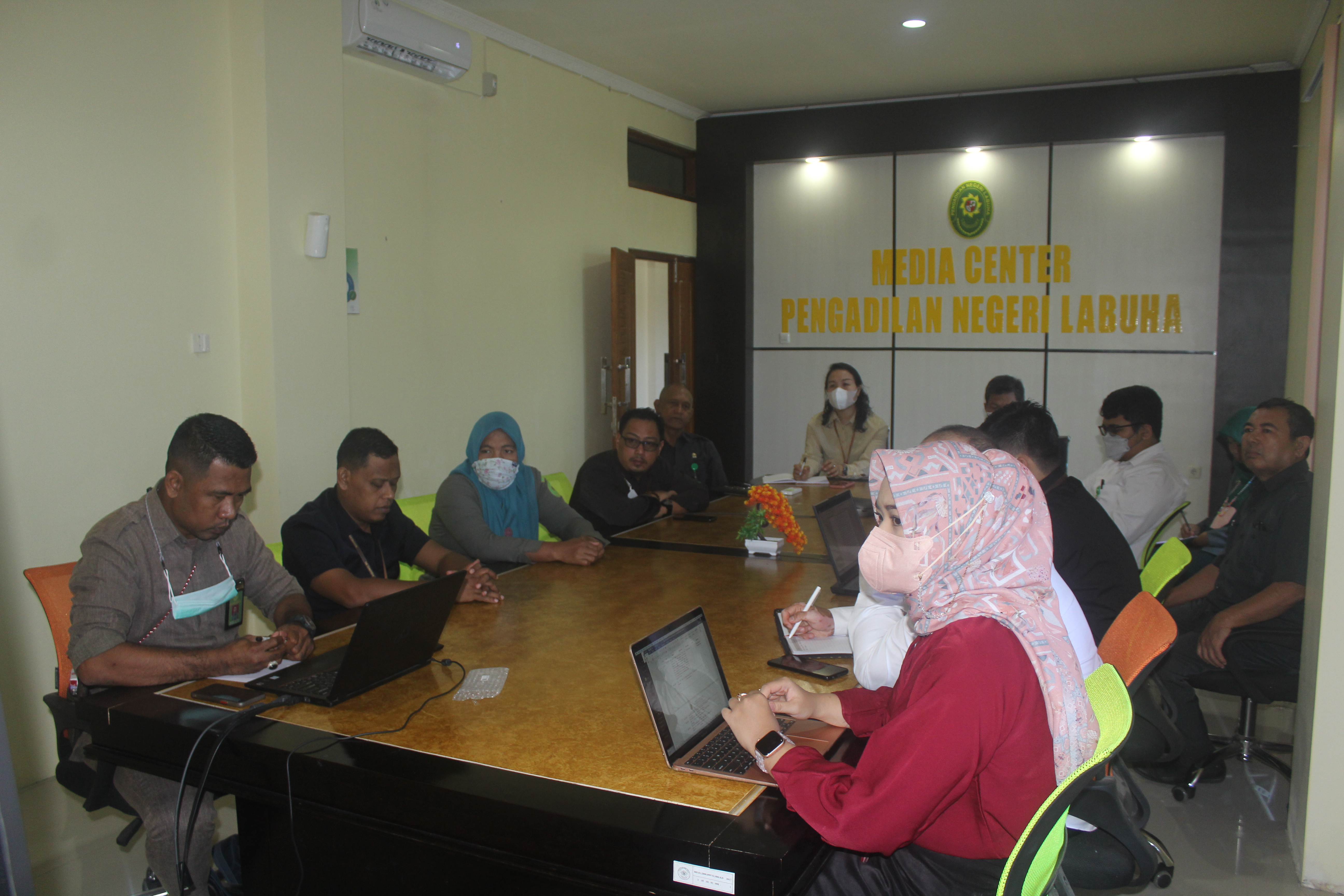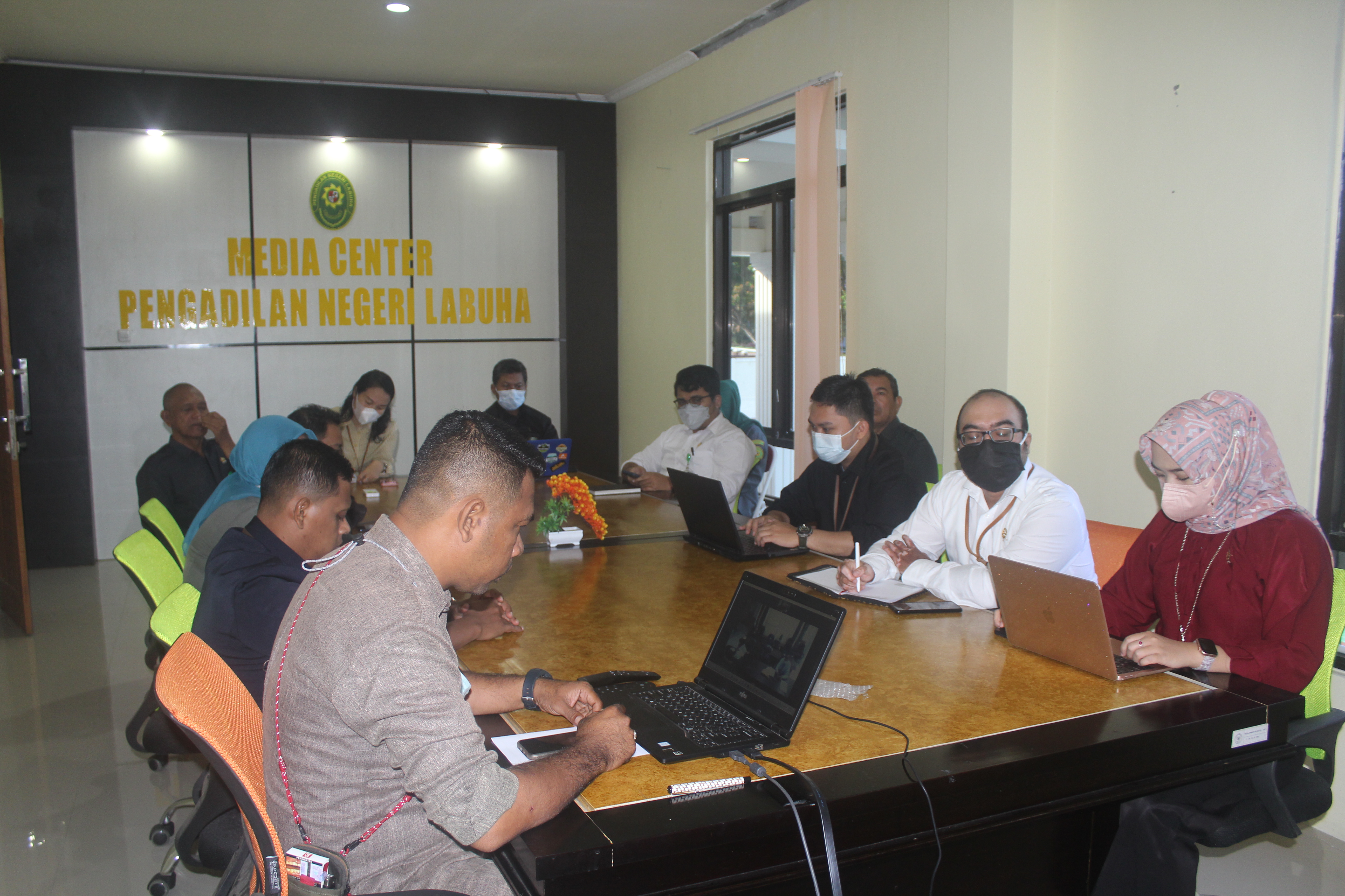 Rabu, 26/01/2022. Pengadilan Negeri Labuha melaksanakan Agenda  Pembinaan dan Pengawasan Oleh Pengadilan Tinggi Maluku Utara Secara Virtual. Bertempat di Ruang Media Center Pengadilan Negeri Labuha dan diikuti Oleh Ketua Pengadilan Negeri Labuha, Wakil Ketua, Para Hakim, Panitera, Sekretaris, Pejabat Struktural dan Fungsional.