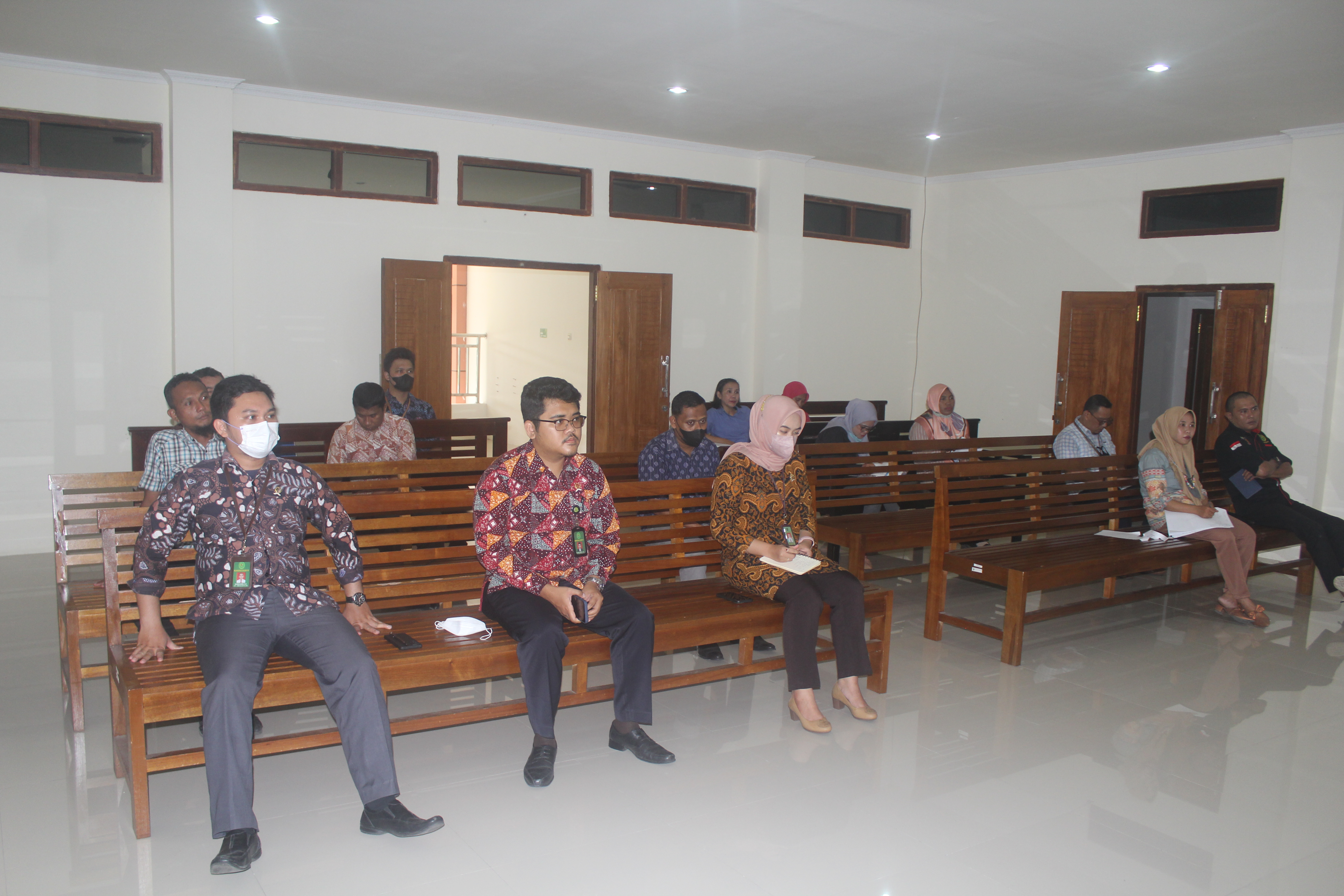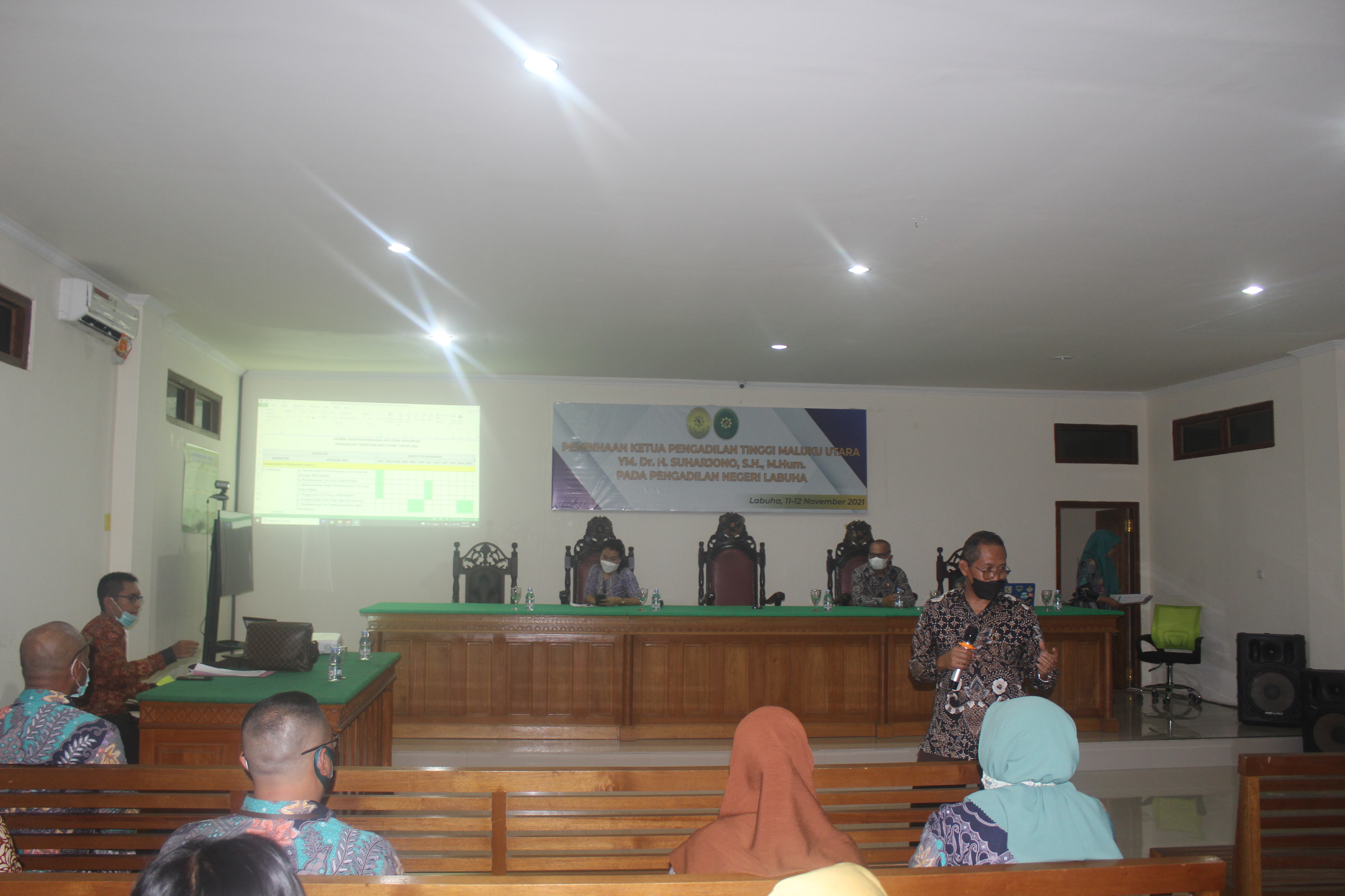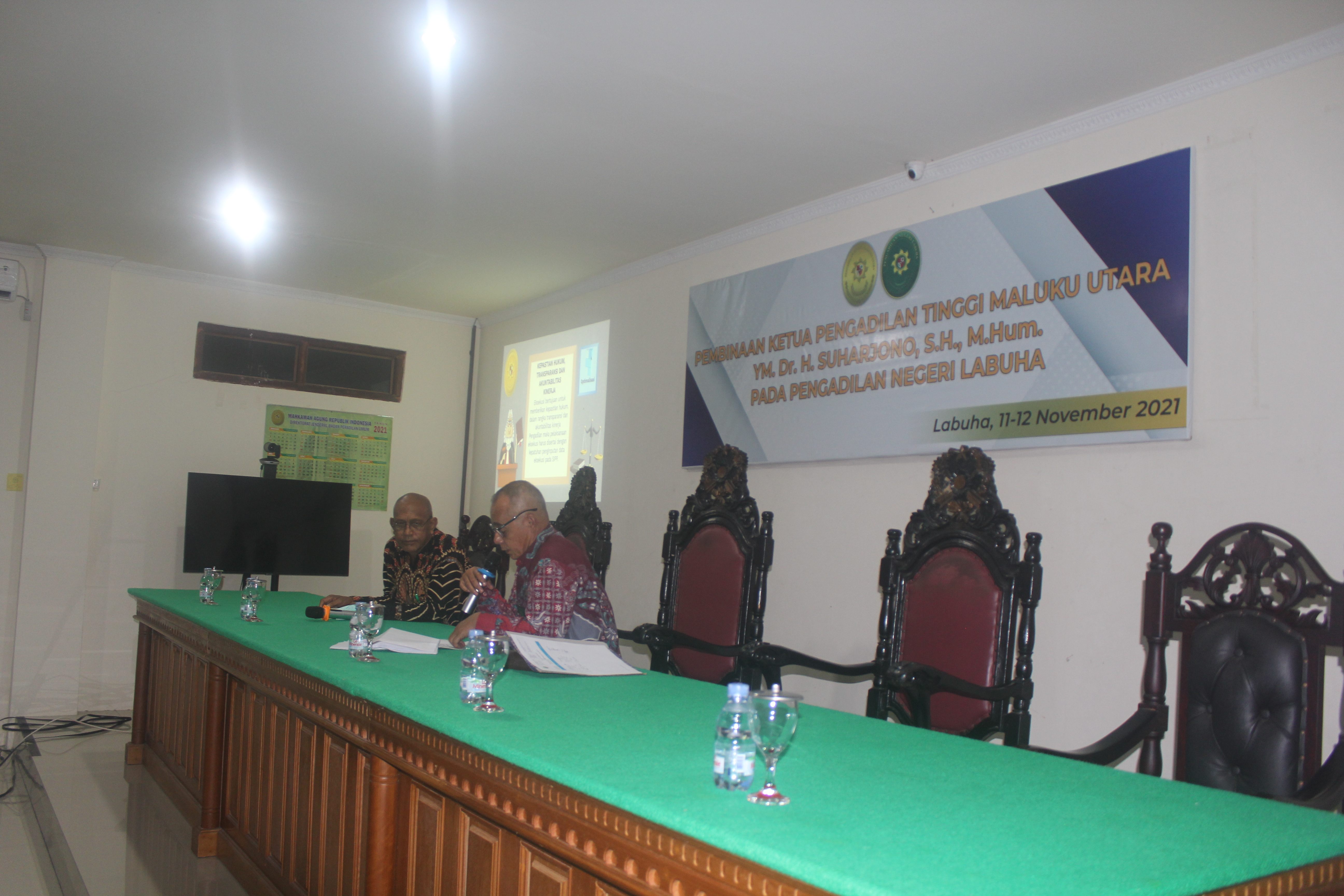 Labuha, 11 November 2021. YM Bapak Ketua Pengadilan Tinggi Maluku Utara dengan didampingi oleh Panitera Pengadilan Tinggi Maluku Utara mengunjungi Kantor Pengadilan Negeri Labuha dalam Rangka Pembinaan mengenai Pembangunan Zona Integritas menuju WBK/WBBM dan Pembinaan terkait E-court. Kegiatan Pembinaan tersebut dilaksanakan selama 2 (dua) hari yang dimulai pada Kamis, 11 November 2021 hingga Jumat, 12 November 2021.