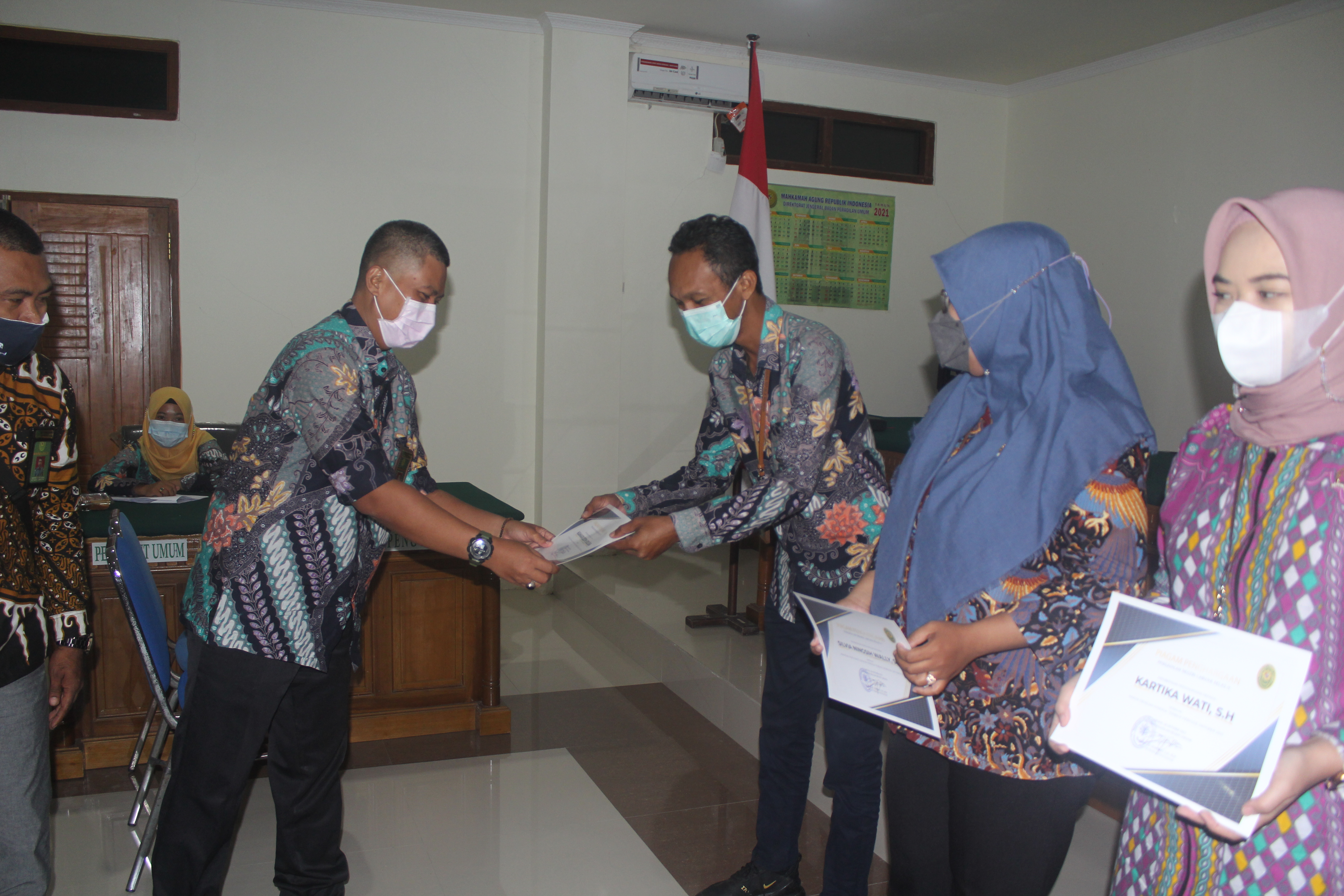 Selanjutnya ketua pengadilan menegeaskan agar para hakim dapat memahami perma no 7 tahun 2016, perma no 8 tahun 2016 dan perma no 9 tahun 2016. Selanjutnya pembagian Piagam penghargaan Kinerja terbaik,Untuk kinerja terbaik Hakim periode oktober yaitu Ibu. Kartika Wati, S.H.. Untuk Kinerja Terbaik Panitera Pengganti Periode oktober yaitu Ibu. Silvia ningsi Wally, S.H., Untuk Kinerja Terbaik Jurusita Pengganti diberikan penghargaan kepada Bpk. Kamarudini Solisa.