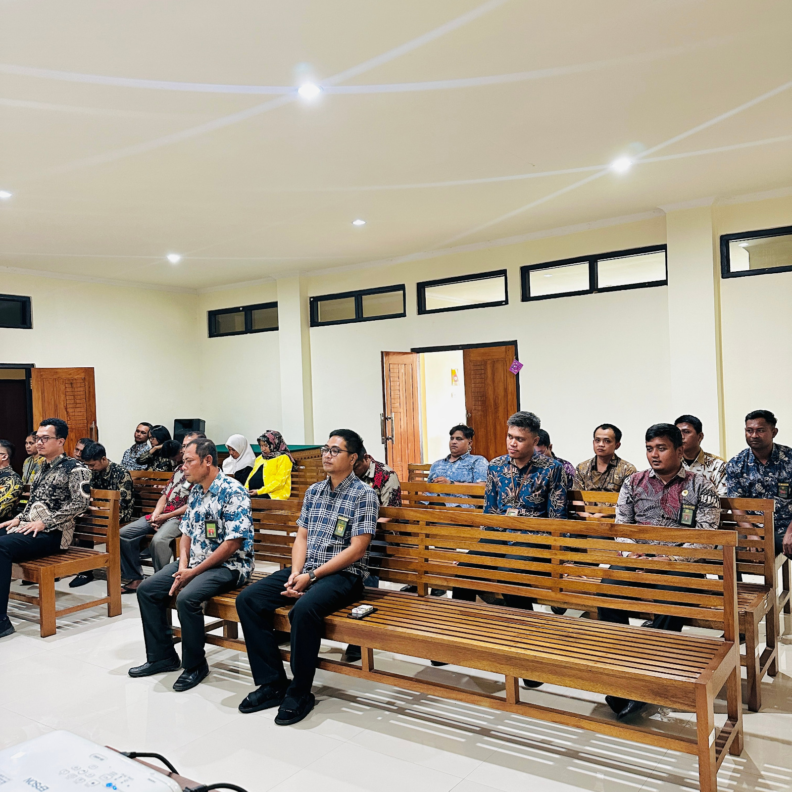 Para pegawai yang hadir memberikan perhatian penuh selama penyampaian materi. Beberapa rekomendasi perbaikan juga didiskusikan, termasuk peningkatan ketepatan waktu pelayanan, penyempurnaan dokumentasi, dan penguatan koordinasi antar unit.