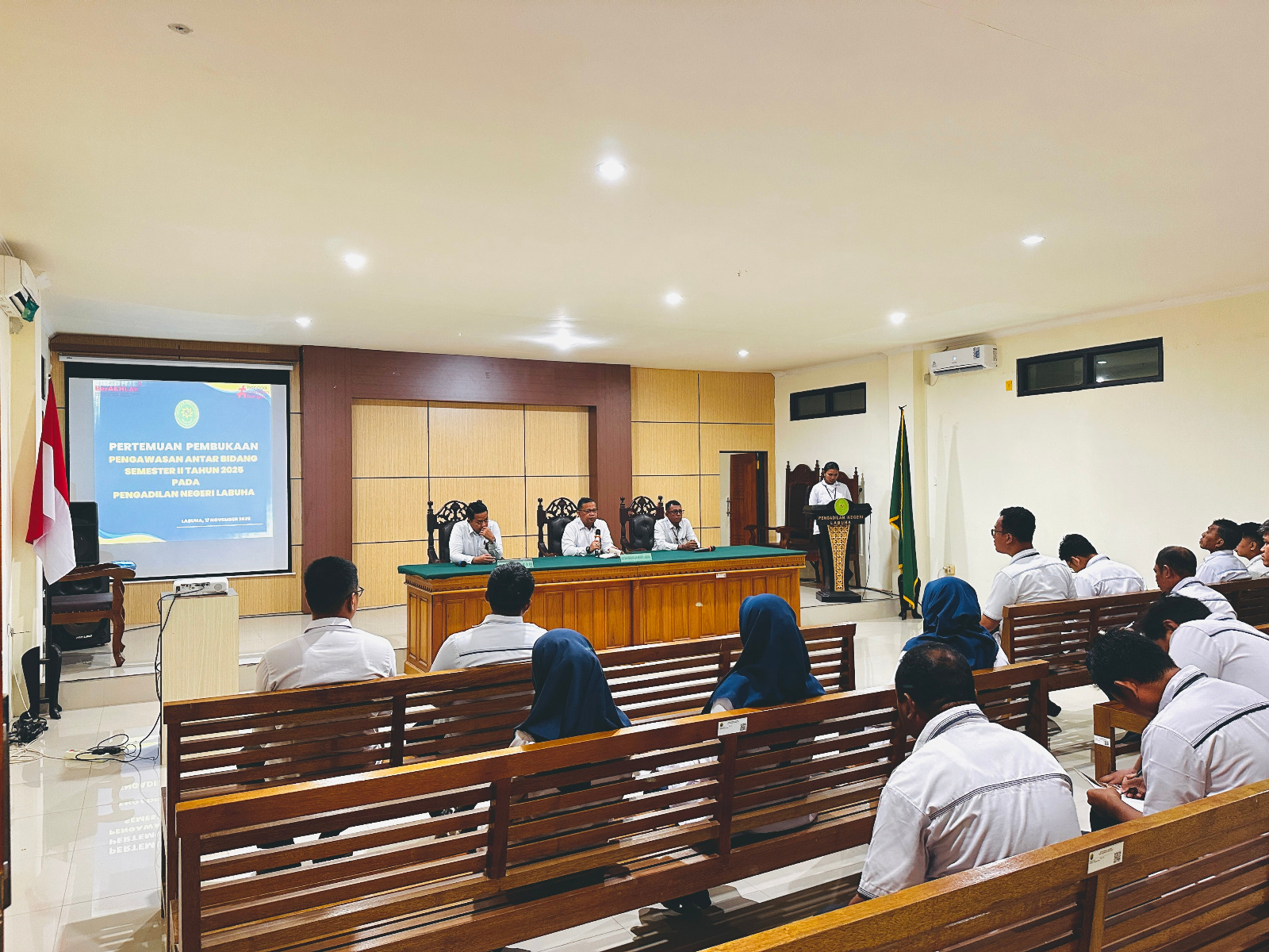 Labuha, 24 November 2025 — Pengadilan Negeri Labuha menggelar Opening Meeting Asesmen Internal AMPUH Semester II Tahun 2025 yang berlangsung di Ruang Rapat . Kegiatan ini dihadiri oleh para hakim, pejabat struktural, pejabat fungsional, serta seluruh pegawai Pengadilan Negeri Labuha.