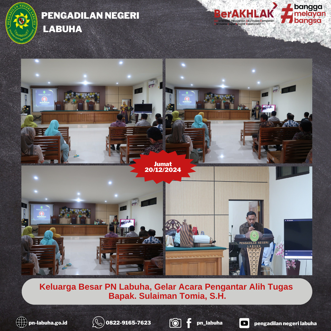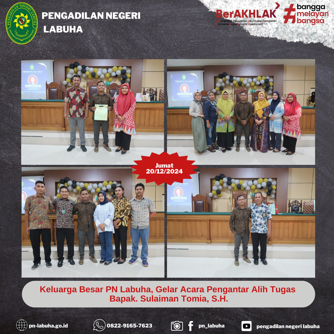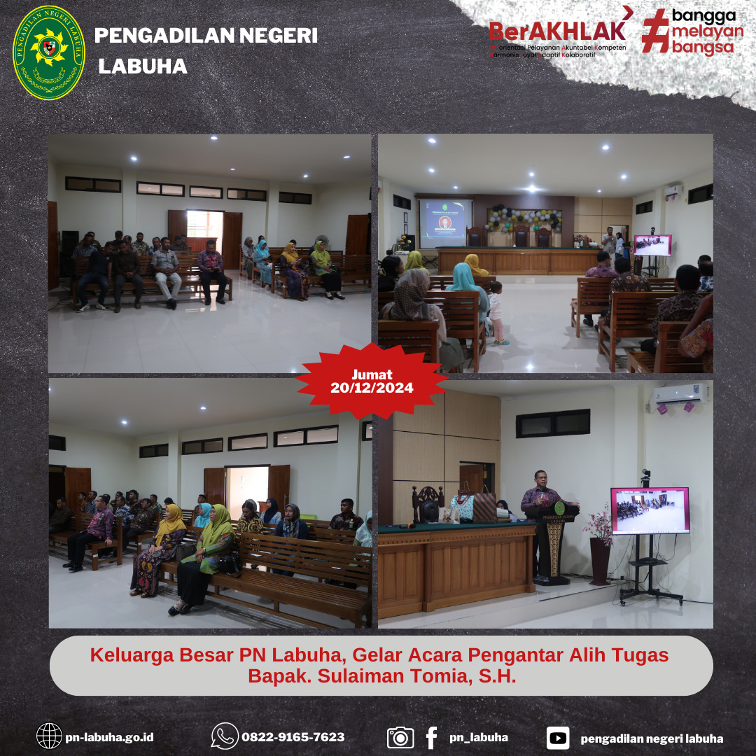 Labuha--Keluarga Besar Pengadilan Negeri Labuha (PN Labuha) menggelar acara Pengantar Alih Tugas Sulaiman Tomia, S.H, Jumat (20/12/2024).