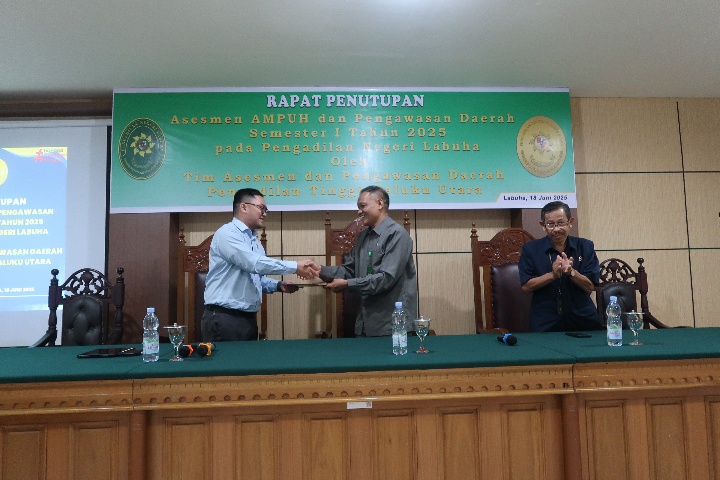 LABUHA—Tim Asesmen Sertifikasi Mutu Pengadilan Unggul Tangguh (AMPUH) dan Pengawasan Daerah Semester I 2025 tidak menemukan permasalahan yang bersifat mayor atau permasalahan besar dan mendesak di Pengadilan Negeri Labuha.