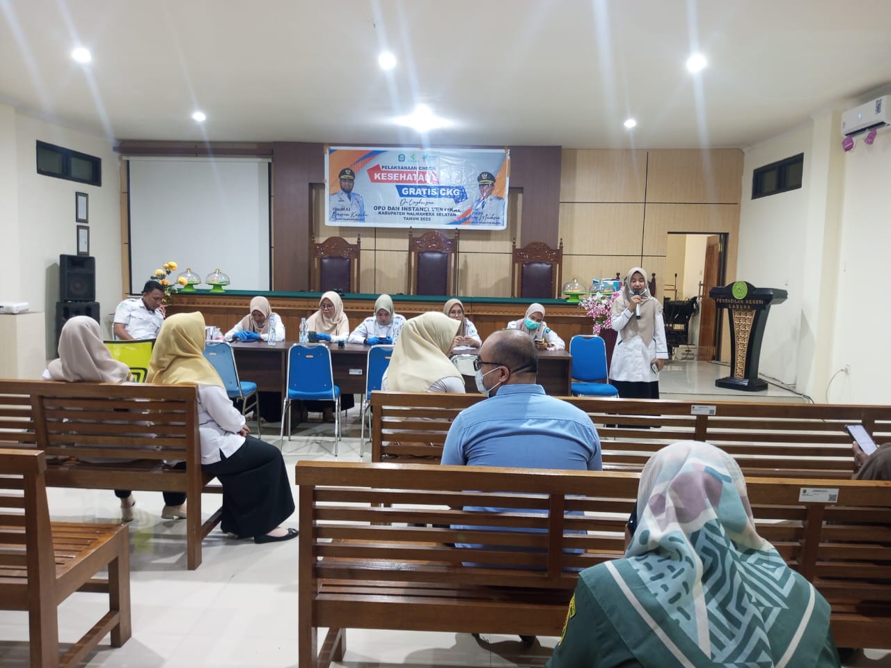 Kegiatan Pemeriksaan Kesehatan gratis pegawai PN Labuha berlangsung di Ruang Rapat PN Labuha, Lantai dua, Kantor PN Labuha, Jalan Karet Putih, Kecamatan Bacan, Kabupaten Halmahera Selatan.