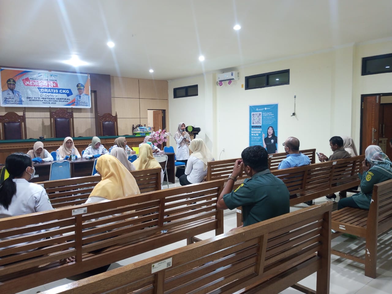 LABUHA—Pegawai Pengadilan Negeri Labuha mendapat layanan Pemeriksaan Kesehatan Gratis (PKG) dari tim Puskesmas (Pusat Kesehatan Masyarakat) Labuha rabu (16/4/2025).