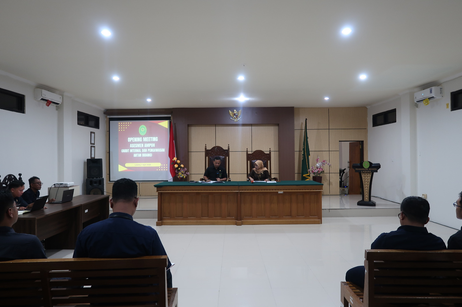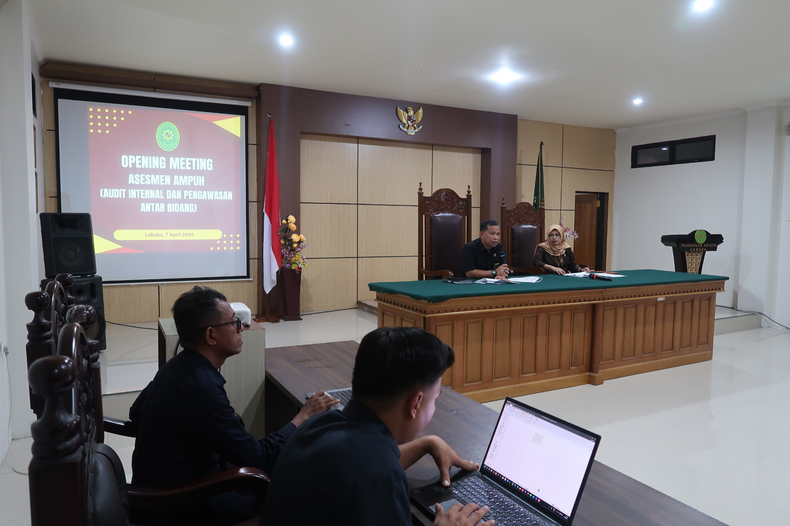 Labuha, 7 April 2026 — Pengadilan Negeri Labuha menggelar kegiatan Opening Meeting Asesmen AMPUH (Audit Internal dan Pengawasan Antar Bidang) yang berlangsung di ruang rapat Pengadilan Negeri Labuha. Kegiatan ini dihadiri oleh Ketua Pengadilan Negeri Labuha, Wakil Ketua Pengadilan Negeri Labuha, para hakim, serta seluruh aparatur Pengadilan Negeri Labuha.