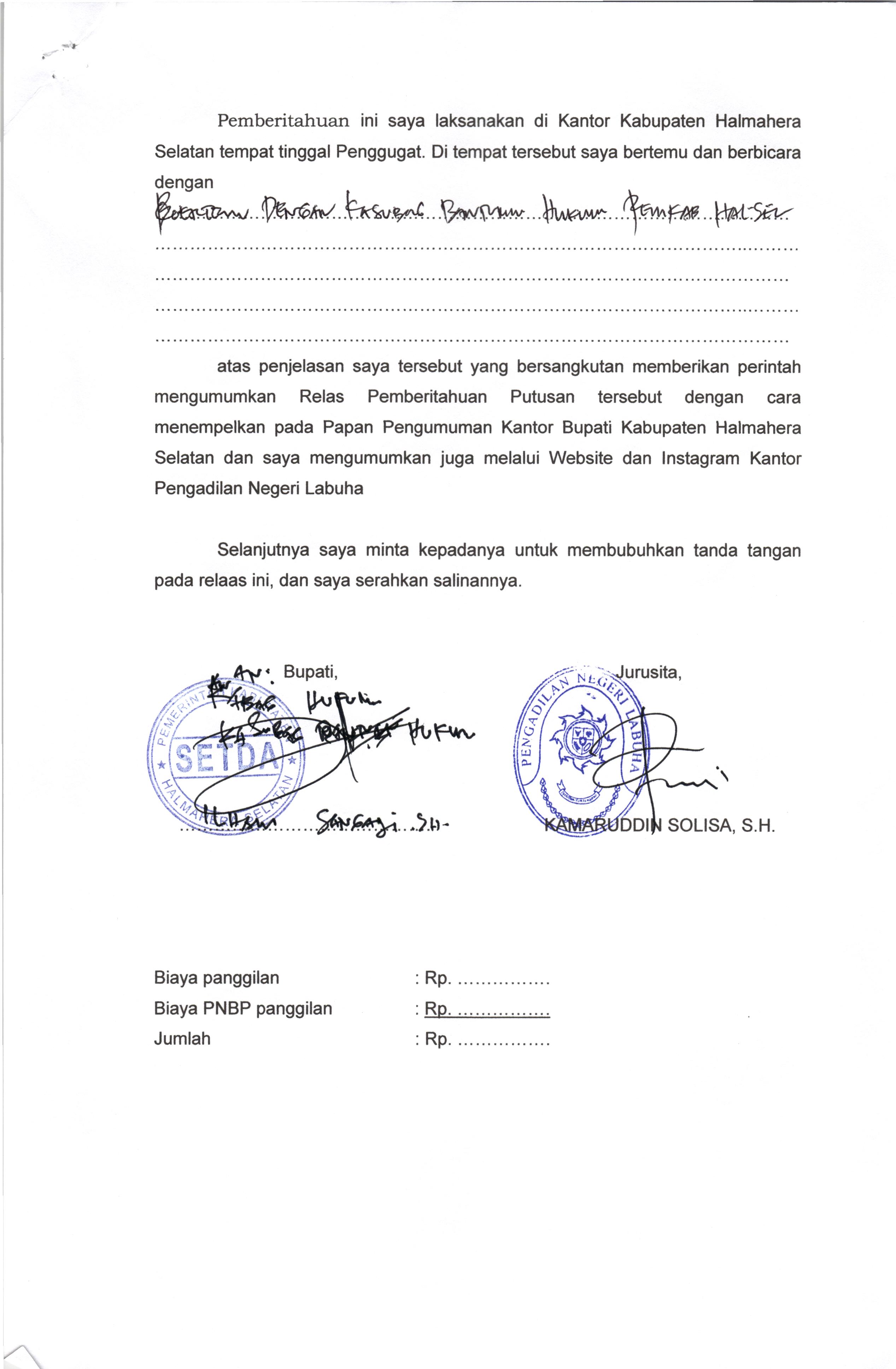 03 April 2024 Relaas Pemberitahuan Putusan Kepada Tergugat Dengan Nomor 25/Pdt.G/2023/PN Rah. on Rabu, 03 April 2024. Posted in Pengumuman Terkini Continue Reading