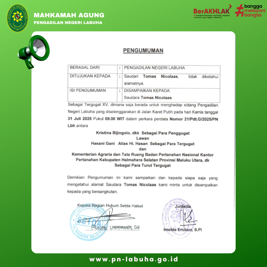 Relaas Panggilan Umum Kepada Tergugat XV Atas Nama Tomas Nicolaas Dengan Nomor Perkara Perdata Nomor 21/Pdt.G/2025/PN Lbh